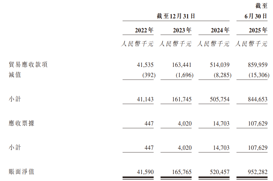 现金流压力的背后,是公司客户集中度过高及应收账款规模较大的问题。2022年至2025年上半年,果下科技来自前五大客户的收入占比分别为98.9%、84.5%、66.5%、77.7%,始终处于高位,客户结构单一导致公司议价权较弱。为维系客户关系,公司对客户的信贷期持续延长,贸易应收款项周转天数从2022年的56.2天,增至2023年的119.0天、2024年的120.6天,2025年上半年更是达到181.8天,资金回收周期大幅拉长。