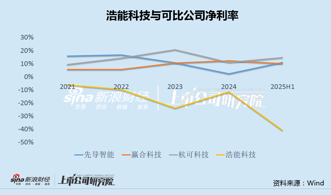 2020年至2024年,浩能科技分别亏损2.44亿、0.51亿、1.33亿,2.50亿和0.98亿,今年上半年再亏0.81亿,盈利能力远远落后于先导智能、赢合科技(维权)和杭可科技等可比公司。